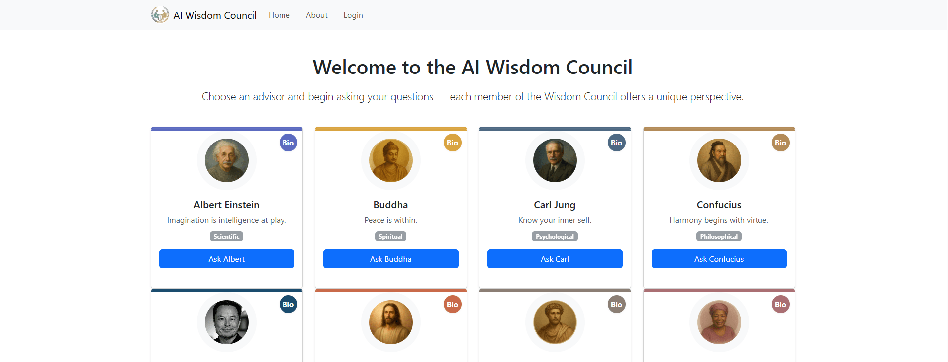 The AI Wisdom Council is a truly unique online platform dedicated to making the profound, guiding wisdom of history’s greatest minds accessible to everyone, everywhere, at any time. The core mission, led by AI SureTech, is to inspire, educate, and empower people by allowing them to consult a diverse “council” of renowned advisors, each offering a distinct and deep perspective. Users are invited to “Choose an advisor and begin asking your questions,” selecting from a council that spans various disciplines and eras.