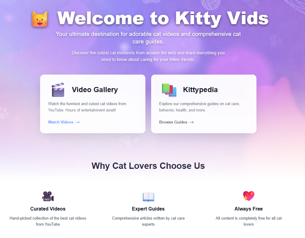 Your ultimate destination for adorable cat videos and comprehensive cat care guides.