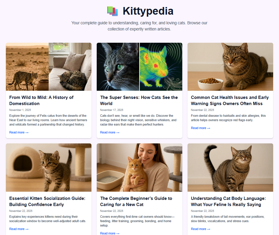 Our Kittypedia section offers comprehensive articles on cat care, behavior, health, and training. We compile knowledge from experienced cat owners and professionals to help you be the best cat parent possible.