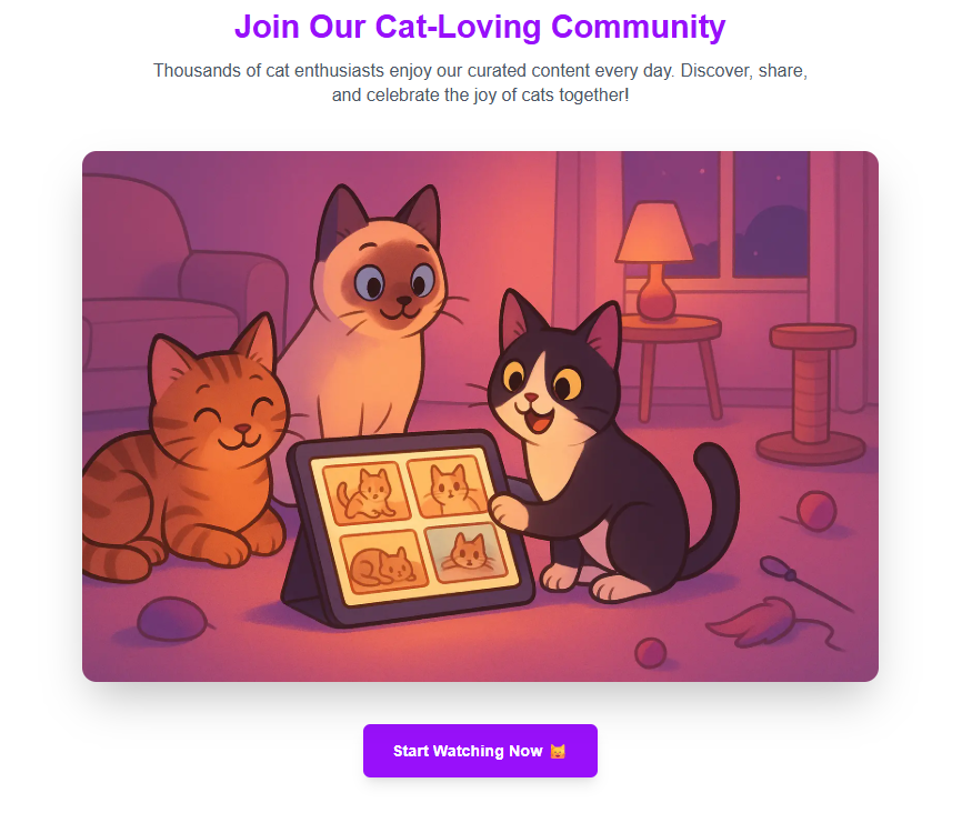 We believe that cat lovers deserve a dedicated space to enjoy quality content.Kitty Vids brings together thousands of cat enthusiasts who share a common love for these amazing animals.