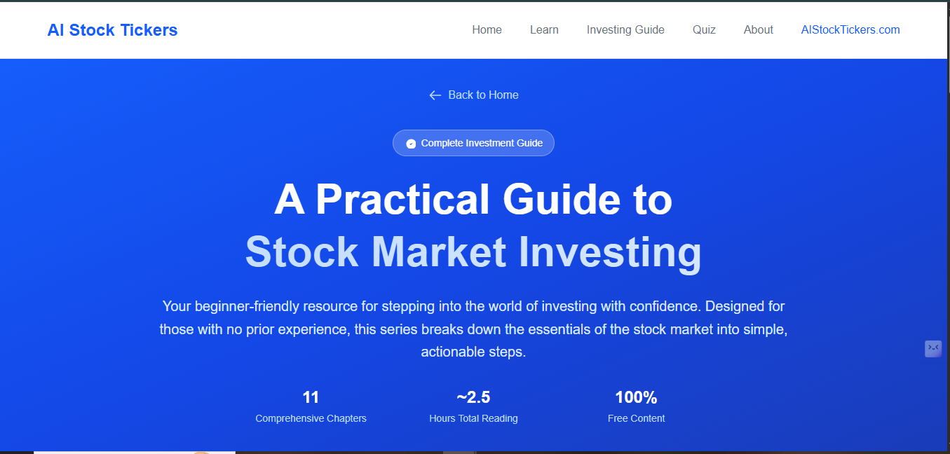 Your comprehensive, step-by-step resource for mastering stock market investing. From absolute beginner to confident investor in 11 structured chapters.